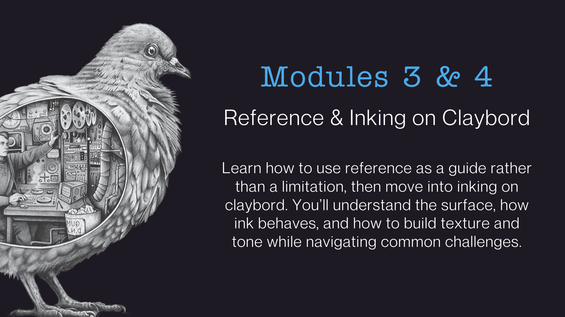 In this course, we’ll explore the tools, techniques, and mindset behind layered drawing. You’ll learn how to slow down, work intentionally, and build images through ink, scratchboard, and subtle shifts of light and tone.
